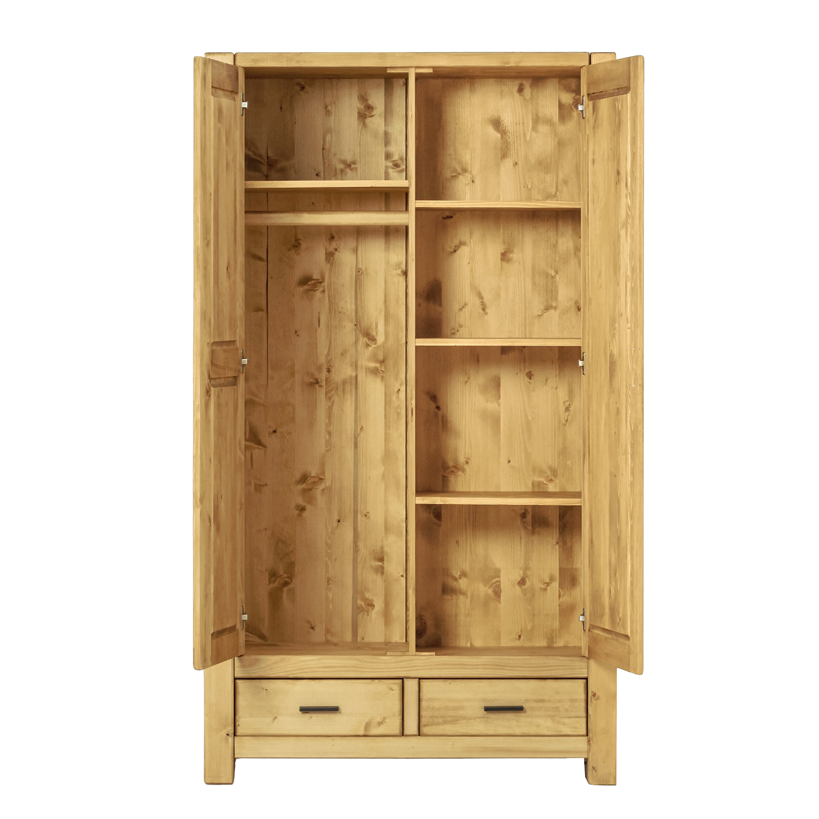 Cette magnifique armoire 2 Portes Battantes et 2 Tiroirs Morzine en Pin Massif saura sublimer votre intérieur avec son style contemporain et épuré. Imaginé dans un bois de pin noble et durable, ce meuble vous offrira un rangement optimal tout en apportant une touche de caractère à votre pièce.