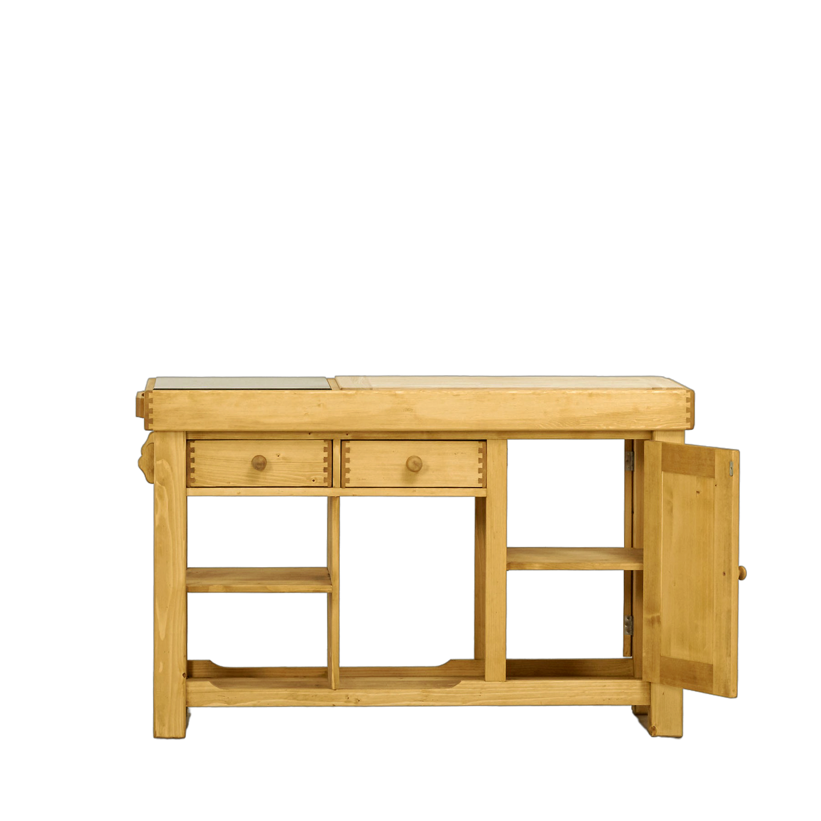 – Meuble de métier, billot grand modèle en pin massif – Charme authentique, intemporel et qualité de fabrication soignée – Facilité d’entretien et de nettoyage – Nombreux espaces de rangement pour une cuisine organisée