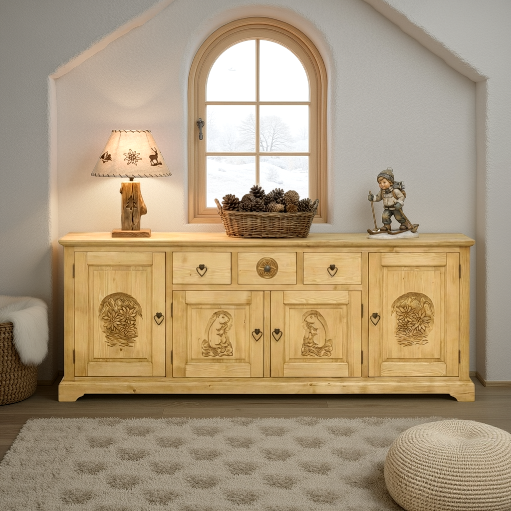 Buffet en Pin Massif Sculpté Style Montagne | meublespin.fr