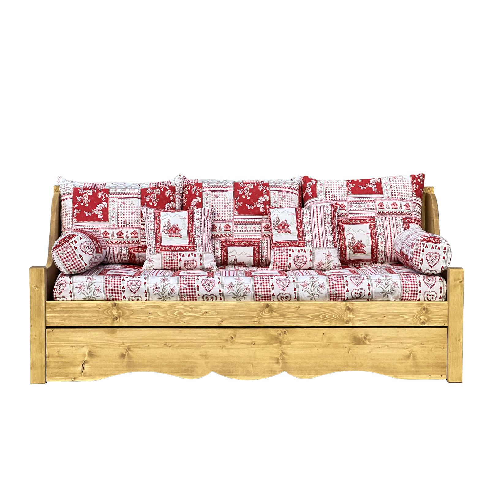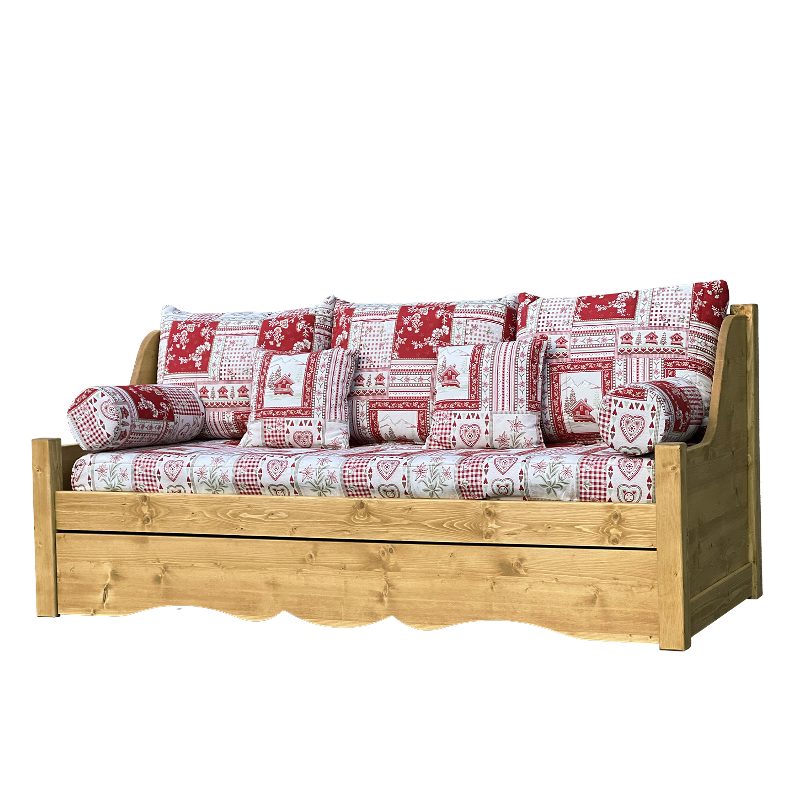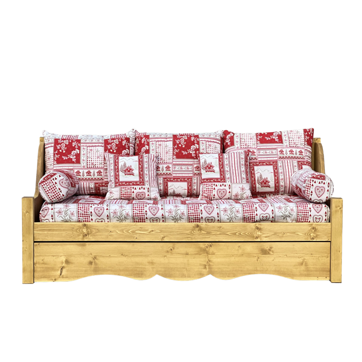 Canapé Gigogne Jura en Pin Massif – Vanoise rouge Canapés Gigognes en Bois Massif meublespin.fr - mobilier et de décoration de style montagne ou chalet- meubles en pin, mobilier en bois massif de qualité, canapés convertibles - https://meublespin.fr