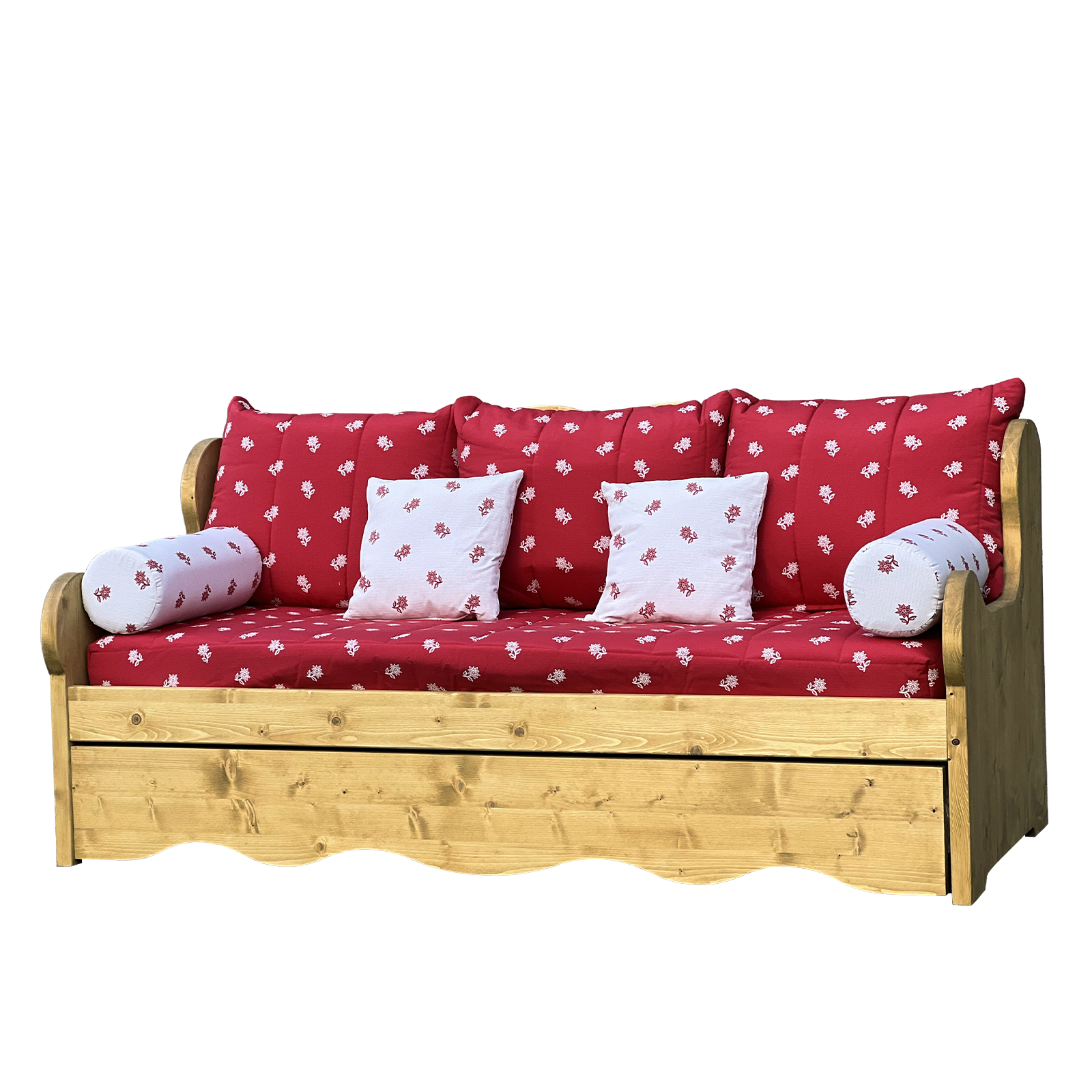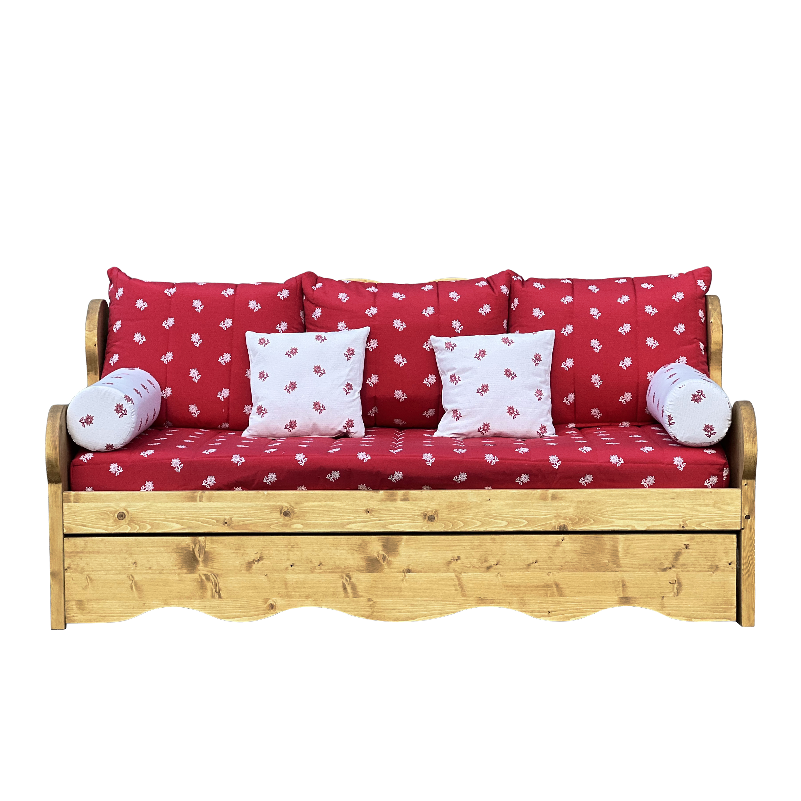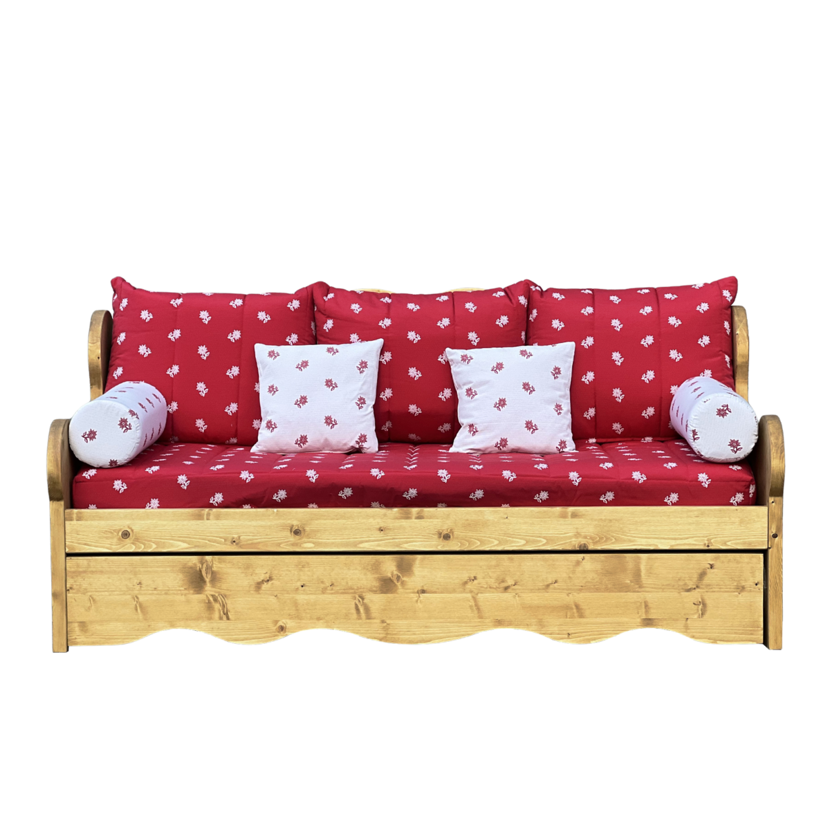 Canapé Montagne Gigogne en Pin Massif – Edelweiss rouge