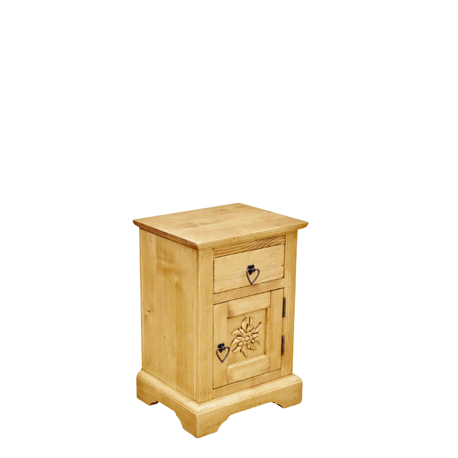 Ce chevet en pin massif s’inscrit dans un style montagnard et cocooning, avec sa finition cirée miel et son cœur découpé sur le tiroir. Il apportera une touche chaleureuse et authentique à votre chambre.