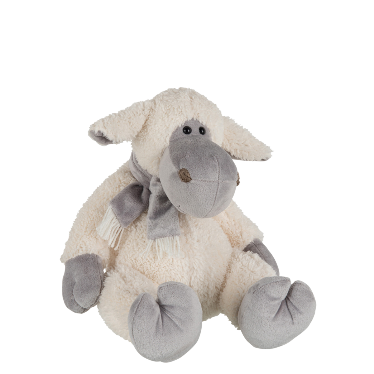 Découvrez ce magnifique Mouton en peluche bien au chaud dans son écharpe