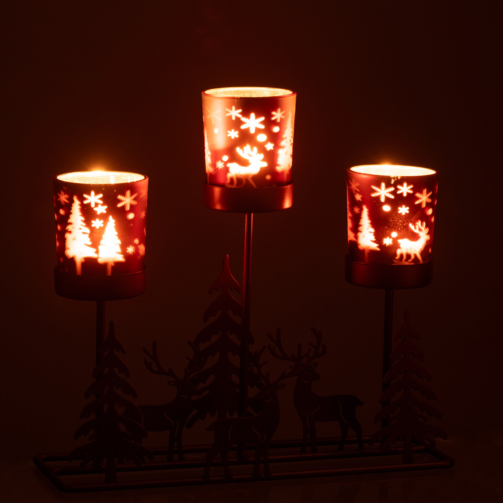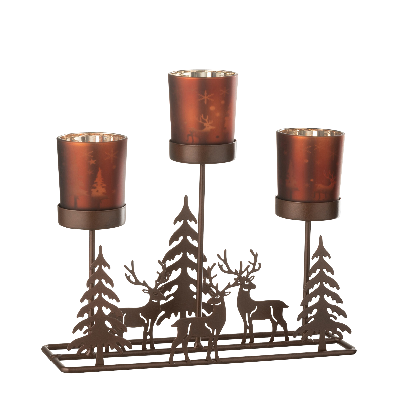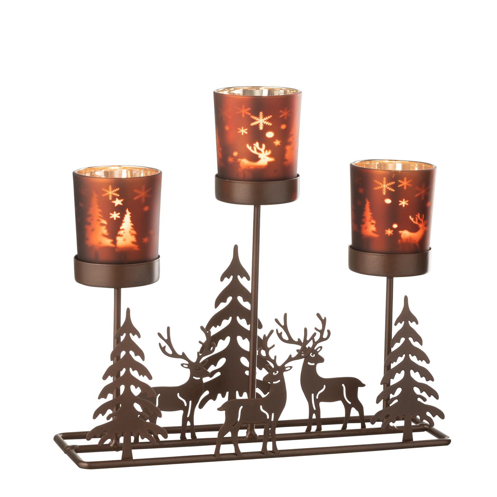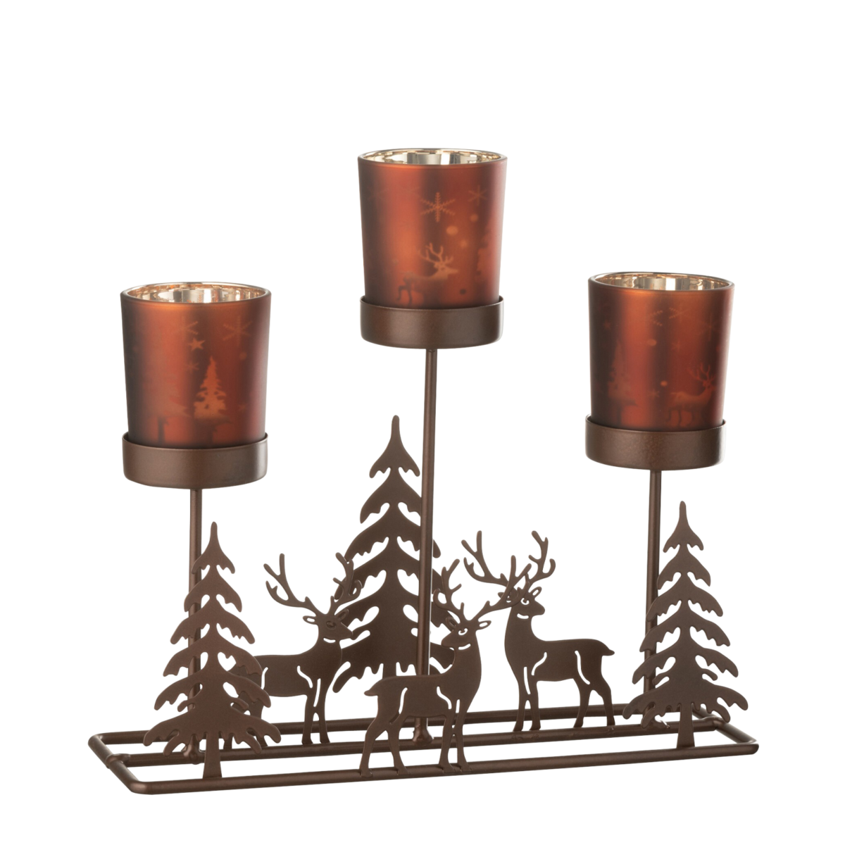 Photophore en métal et bois Cerfs Sapins